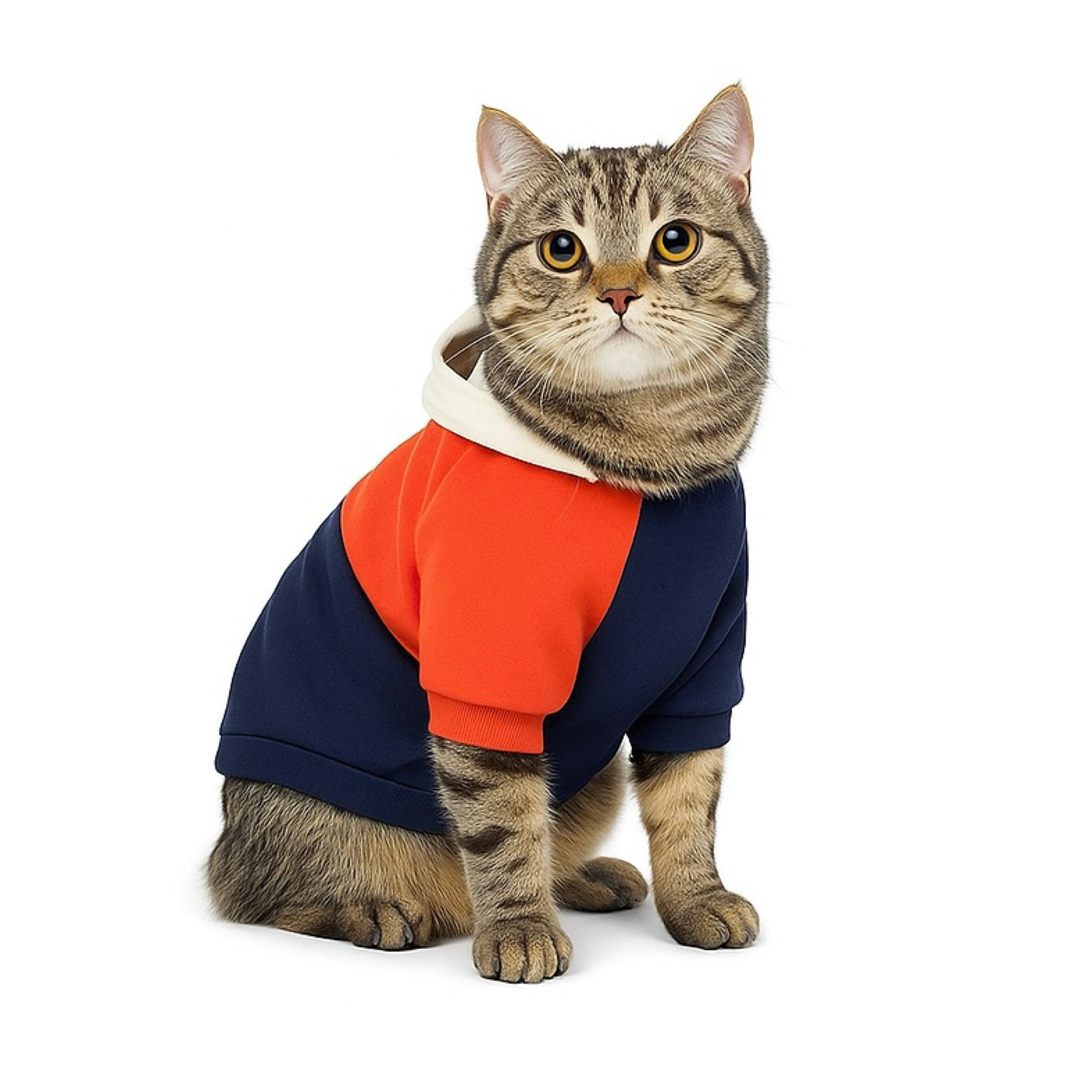 Give your furry friend a stylish edge with our Colorblock Cozy Cat Hoodie! This premium hoodie features a bold navy, cream, and red color block pattern made with soft, breathable fabric, it ensures all-day comfort and a snug fit.