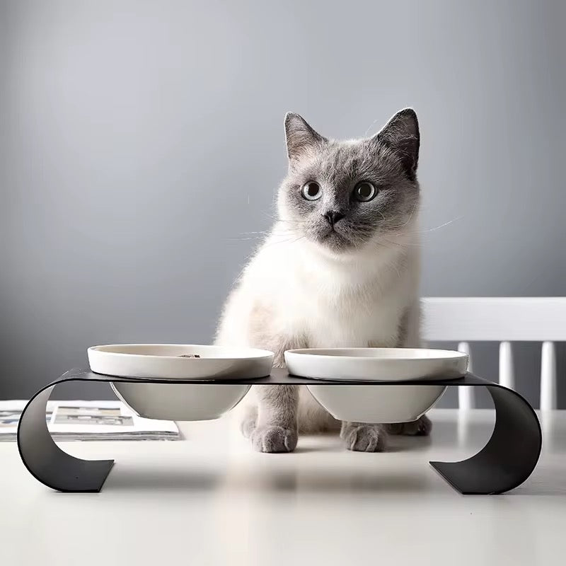 Upgrade your cat’s mealtime with this sleek, modern elevated feeding station. Designed with both style and function in mind, this dual-bowl cat feeder features a curved, minimalist metal frame that raises high-quality ceramic bowls to the ideal height—promoting better digestion and reducing strain on your cat’s neck and joints.